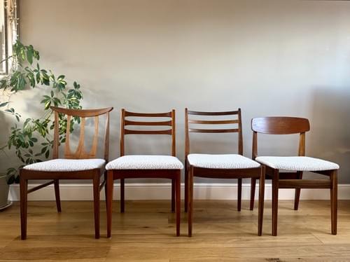 NEW LISTING 1970s Mid-Century Pick n Mix of Teak Chairs, Set of 4