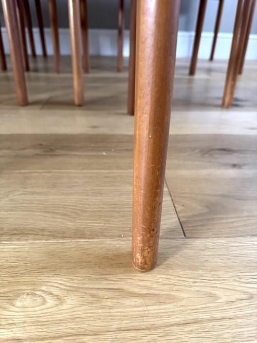 Condition: Good. One chairs shows signs of a re-glue from a previous wobble (no longer wobbly) plus the frames do have age related signs of wear mostly on the lower back legs and bottom back bar. These age related flaws have all been reflected in the asking price. Please see all photos plus video available on request.