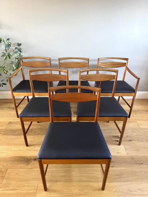 SOLD Mcintosh 1970's Mid Century Modern Teak Dining Chairs, Set of 6 inc x2 Carvers