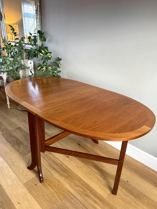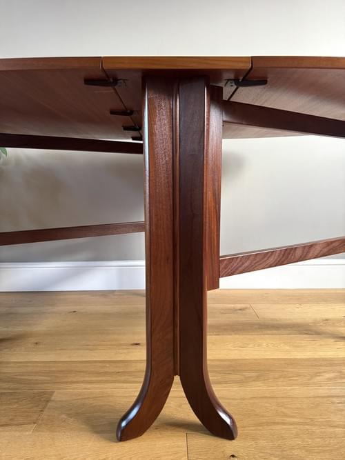 Description: Retro, 1970s Mid-century teak dining by Nathan. Rare and highly sought after Mid-century modern and very on trend oval gate leg dining table. Great when space is an Issue but not comprimising on style or size.